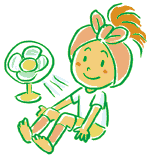 | |夏バテ対策(TOP)|夏バテ度チェック表| |夏バテ対策|1.冷え予防|2.たっぷりの睡眠|3.食事の中身|4.血行促進 5.体温調整| |